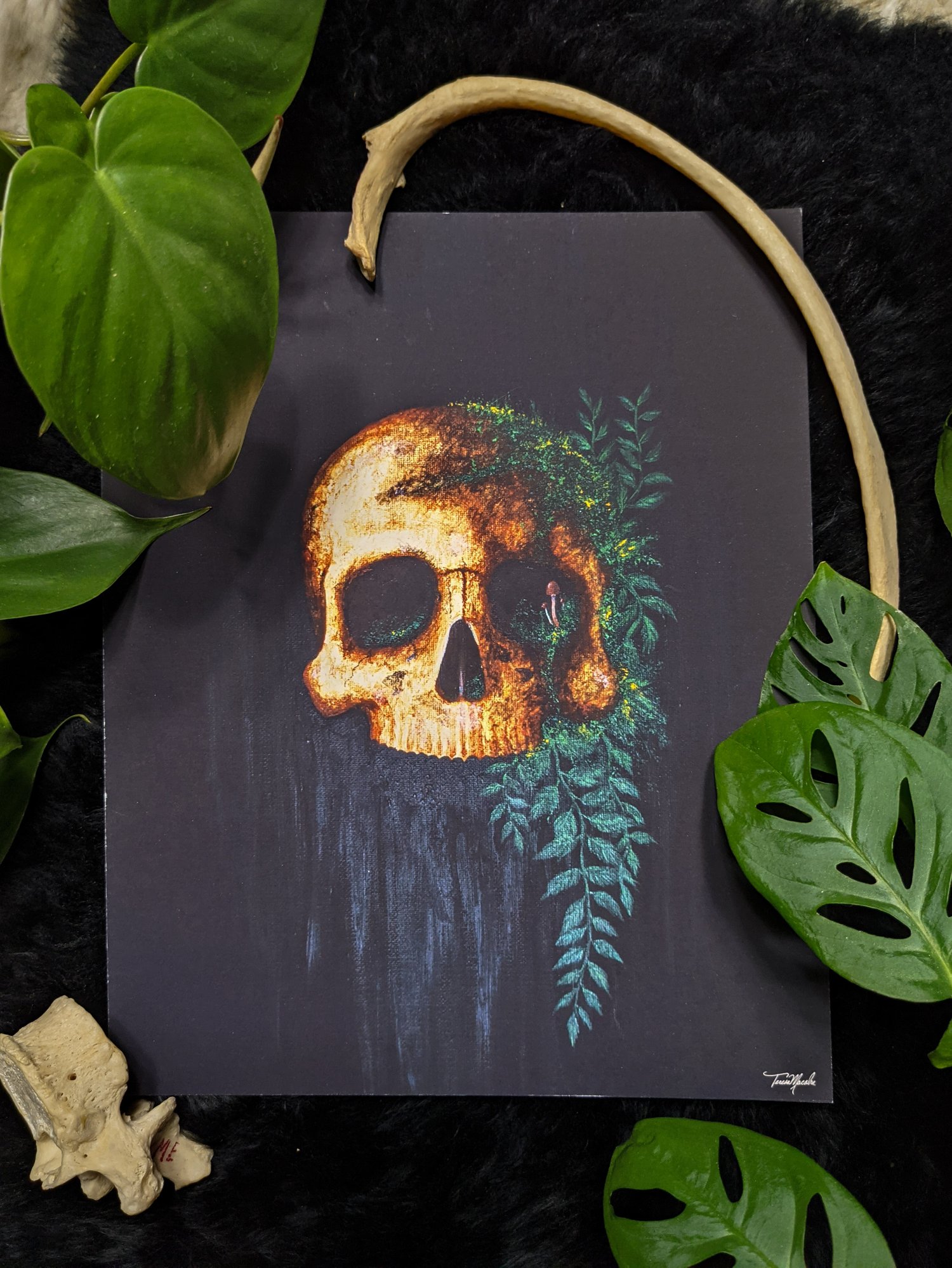 This is a print of an acrylic painting I created for my living room last year. With a home full of plants and bones I wanted a piece that also displayed a mix of life and death.
